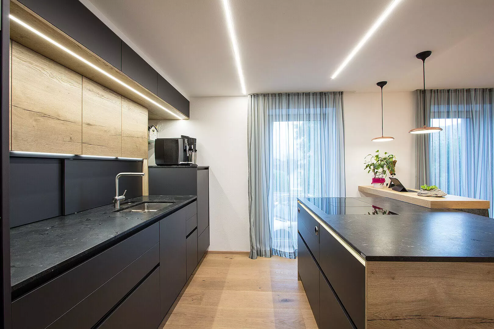 Posiadamy szeroką gamę materiałów oraz zaawansowane zaplecze stolarskie, które pozwoli nam przekształcić nawet najbardziej odważne pomysły w rzeczywistość! Jesteśmy ekspertami w tworzeniu mebli na wymiar, takich jak szafy, garderoby, kuchnie, meble do pokoju dziecięcego, biurowe, łazienkowe czy sypialniane. Wieloletnie doświadczenie w produkcji mebli designerskich pozwala nam perfekcyjnie umeblować każdą, nawet nietypową przestrzeń.