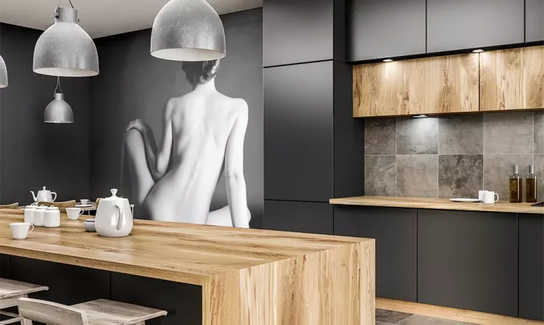 Ogranicz ilość akcesoriów. Niech materiały, poprzez swoją jakość i szlachetny charakter, mówią same za siebie. Postaw na starannie wykończone meble kuchenne, wysokiej jakości sprzęt AGD i polerowane fronty. Najlepszym rozwiązaniem w tym przypadku będzie drewno i kamień naturalny, które niestety wymagają dużych nakładów. Marmur, który jest materiałem bardzo wrażliwym na wodę, jest opcją niepraktyczną, dlatego jeśli marzysz o ścianie pokrytej tym szlachetnym materiałem, jako alternatywę możesz zastosować kompozyt kwarcowy, laminat lub specjalną tapetę - zdecyduj się na tapety MAGMA. Dzięki rozwiązaniom tego typu nie trzeba się już martwić o powtarzalność przedstawionego wzoru. Efekt marmuru gwarantowany!