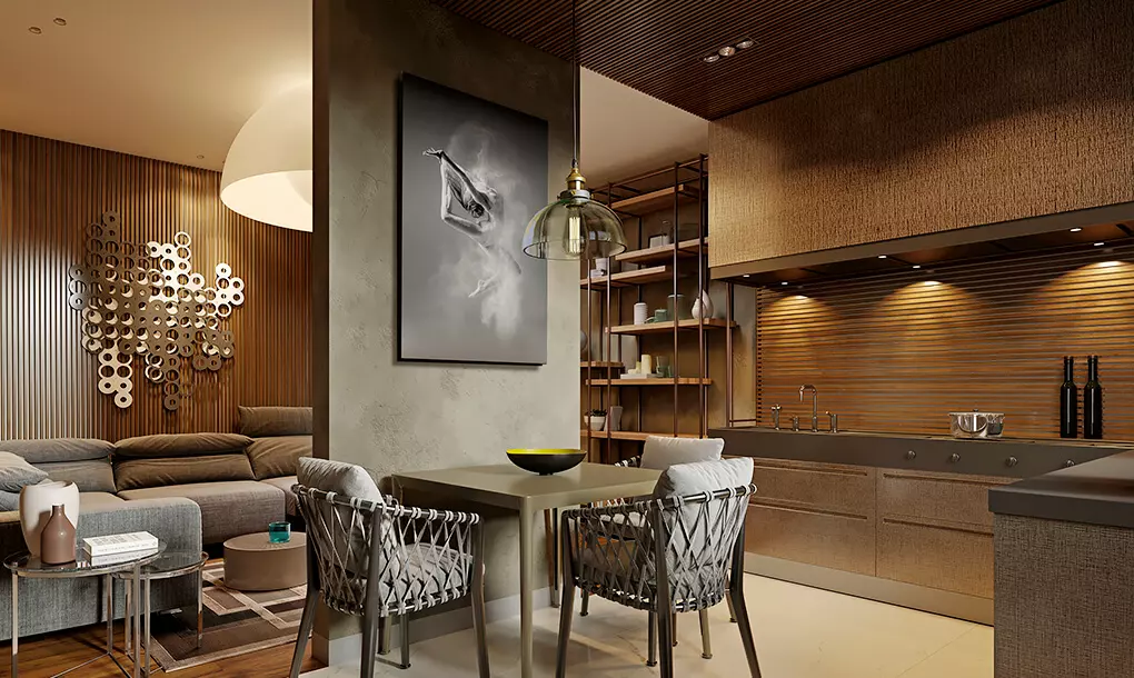 Postaw na bardzo ograniczoną paletę kolorów, nawet monochromatyczną. Dzięki spójności kolorystycznej Twoja kuchnia będzie promieniować poczuciem ładu i spokoju. Ciepły, subtelny beż doskonale uzupełni blask złota i białego marmuru, nadając pomieszczeniu przytulny charakter. Jeśli zależy Ci na bardziej stonowanym efekcie, wykorzystaj chłodne kolory: odcienie szarości w połączeniu z bielą lub srebrem to uosobienie elegancji. Neutralne kolory powinny stanowić podstawę kuchni w stylu glamour, natomiast metaliczne lub kontrastowe kolory powinny być akcentem. Jeśli jednak chcesz stworzyć atmosferę z charakterem, pewną siebie i jednocześnie klasyczną, nie ma lepszego wyboru niż połączenie czerni i bieli. To pomysł dla tych, którzy nie chcą iść na żadne dekoracyjne kompromisy. Ważne jest, aby kolory kuchni pasowały do kolorów pozostałych pomieszczeń, zwłaszcza jeśli Twoja kuchnia jest otwarta na salon lub jadalnię. Mniej znaczy więcej