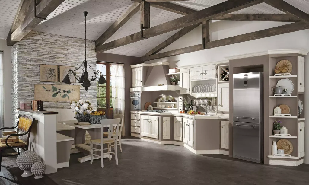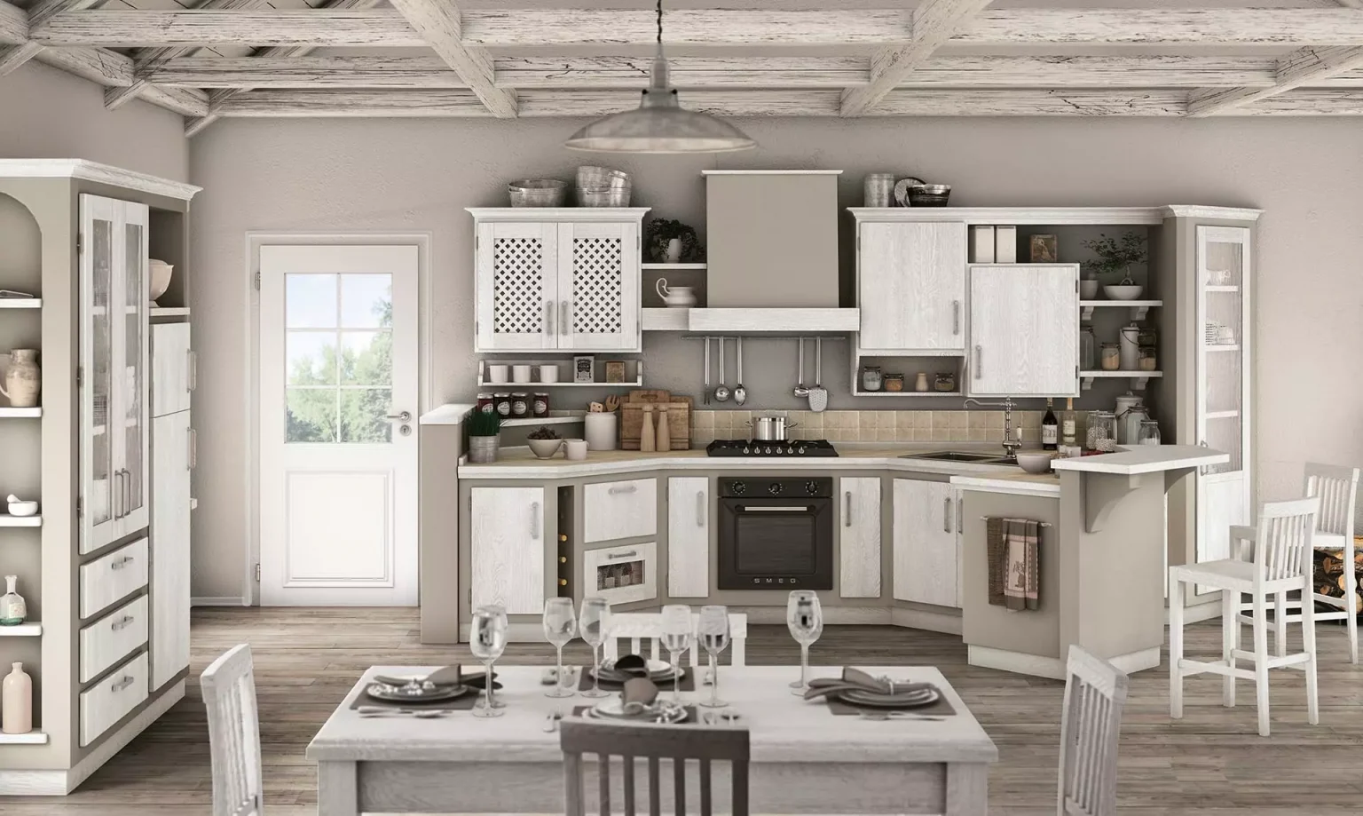 W każdej szanującej się kuchni prowansalskiej powinien znaleźć się duży stół z wieloma krzesłami (niekoniecznie wszystkimi jednakowymi!), na wzór tych, wokół których gromadziły się duże rodziny. Jeśli chodzi o materiały, zawsze stawiaj na to, co naturalne: Podłogi z terakoty lub kamienia, inkrustowane drewno, dodatki z kutego żelaza. Przechodząc do kolorów, wybierz te miękkie: gołębią szarość i perłową szarość, jeśli chcesz zachować neutralność. Pudrowy błękit, lawenda i szałwiowa zieleń, jeśli chcesz wyglądać nieco bardziej żywiołowo. Teraz, gdy masz już na myśli ten styl, przejdźmy do nieco bardziej szczegółowych informacji na temat odkrywczych mebli do kuchni w stylu prowansalskim. Vintage urok i naturalne drewno: jak wybrać meble do prowansalskiej kuchni