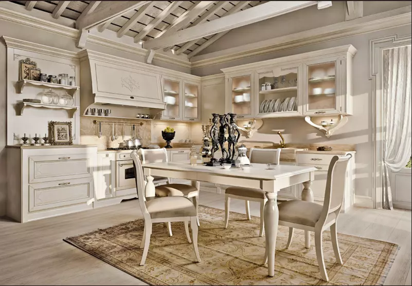 Ponownie, można wybrać między starym i nowym, tak długo, jak nowy ma wszystkie kwalifikacje, które idą dobrze z kuchnią w stylu prowansalskim. Wszystkie odcienie bieli, kości słoniowej, szarości i beżu wyglądają doskonale. Unikaj jednak lakierowanych mebli! Zawsze preferujmy kolor intarsji lub ewentualnie naturalne drewno.
